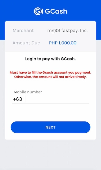 Step 4: The system will redirect you to the GCash login page. Enter your registered phone number and click NEXT.