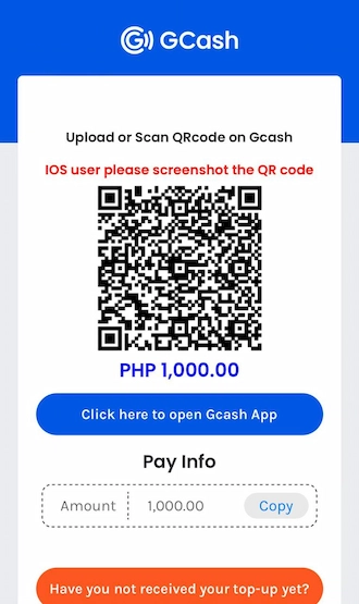 Step 5: A QR code will appear. Open your GCash app, scan the QR code, and authorize the payment. Funds are updated in your account instantly.