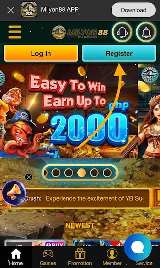 Step 1: Log in to MILYON88 via the official link and click “Register” on the homepage